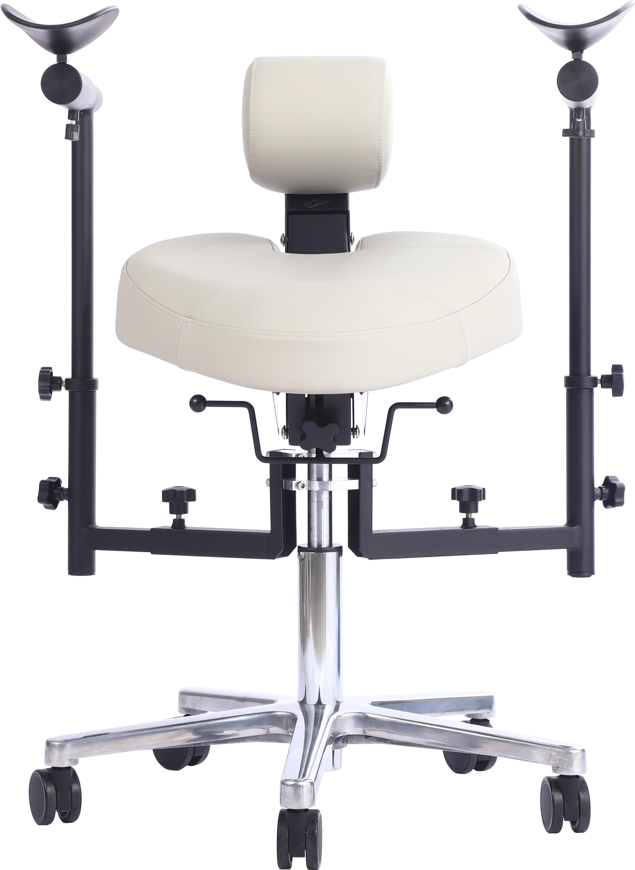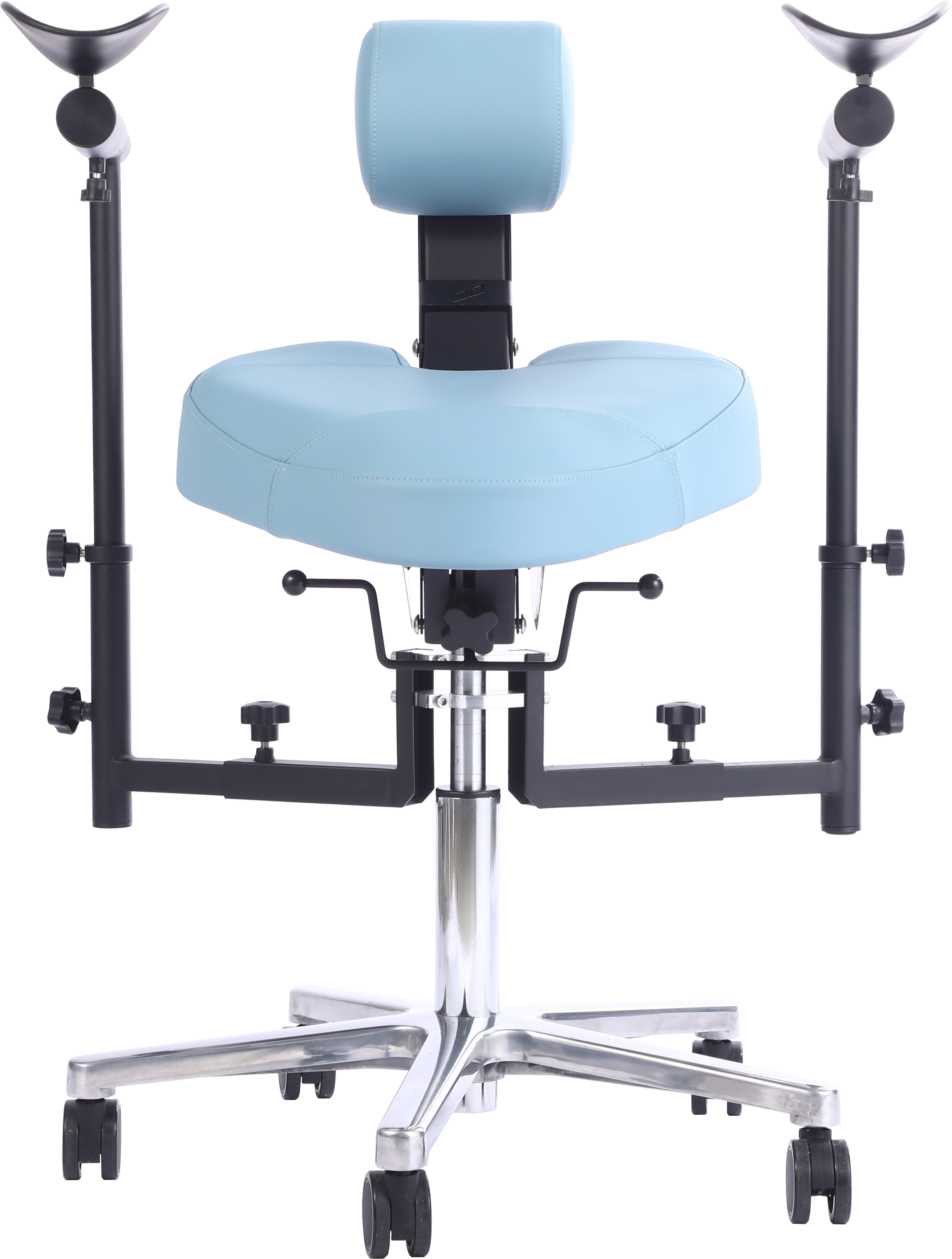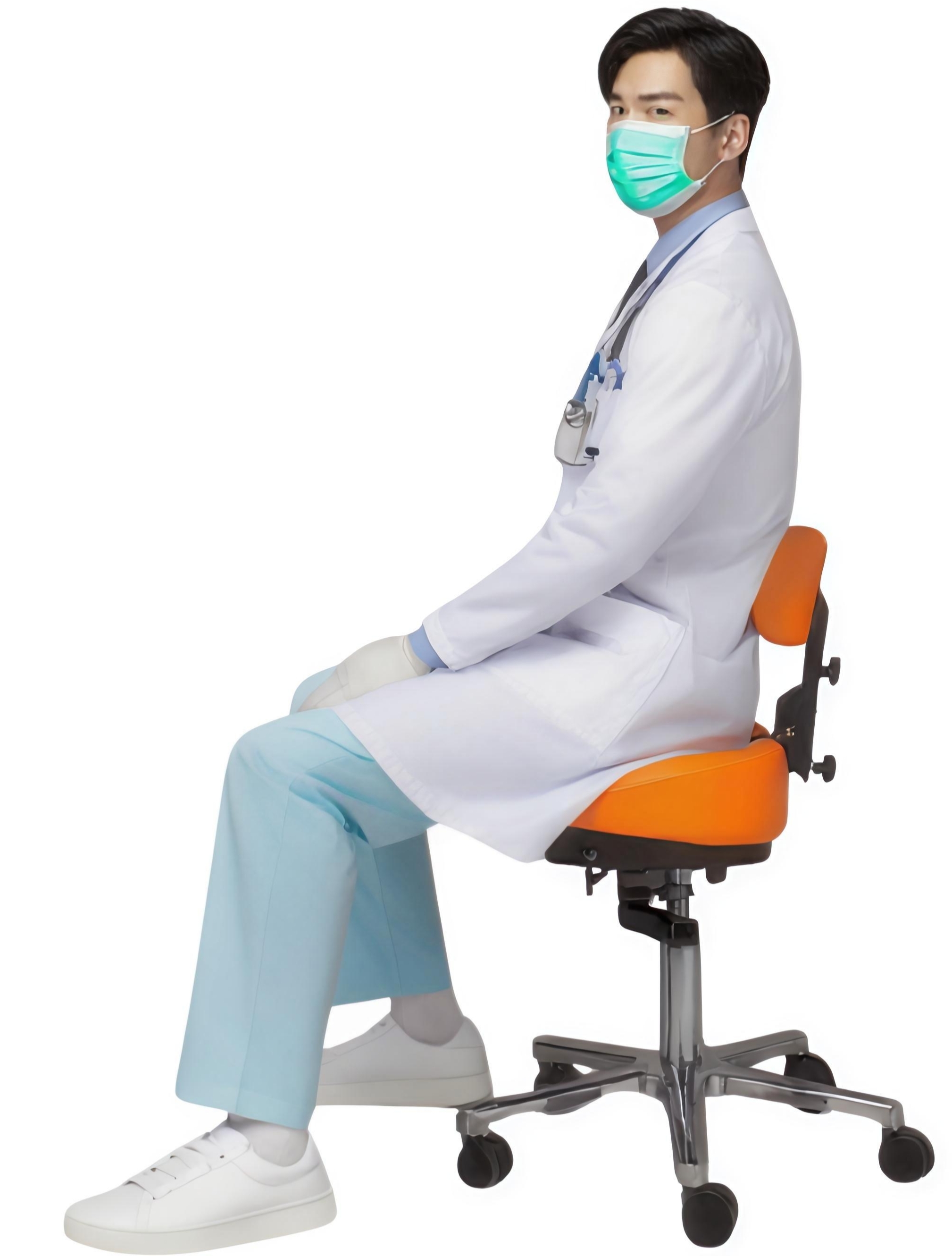 When sitting on Mergo, the legs naturally and comfortably open at an angle of 60-80 degrees, making it easier for us to get close to the patient. However, when you sit on an ordinary chair, you need to struggle to maintain this position, which makes you very prone to fatigue.