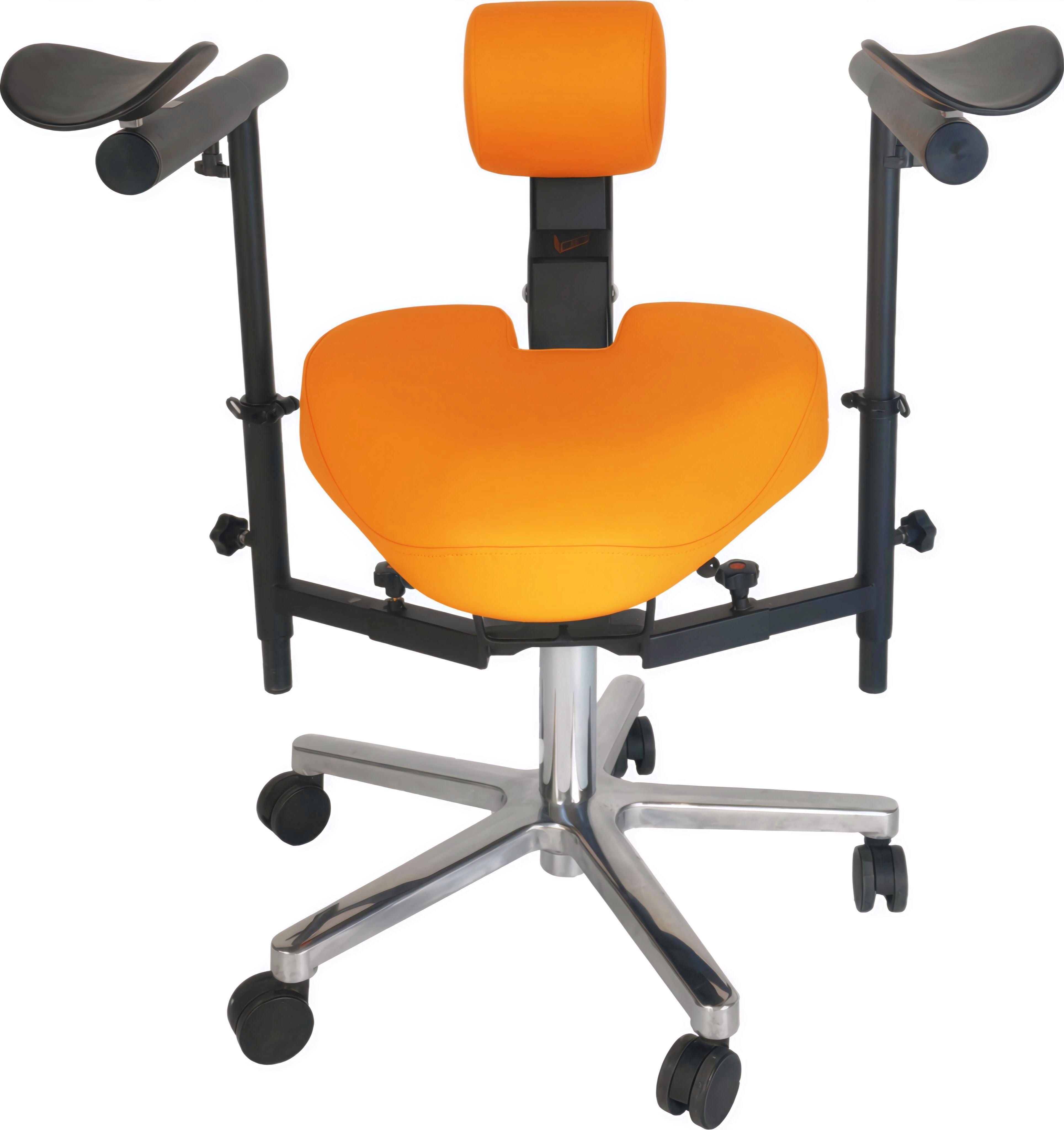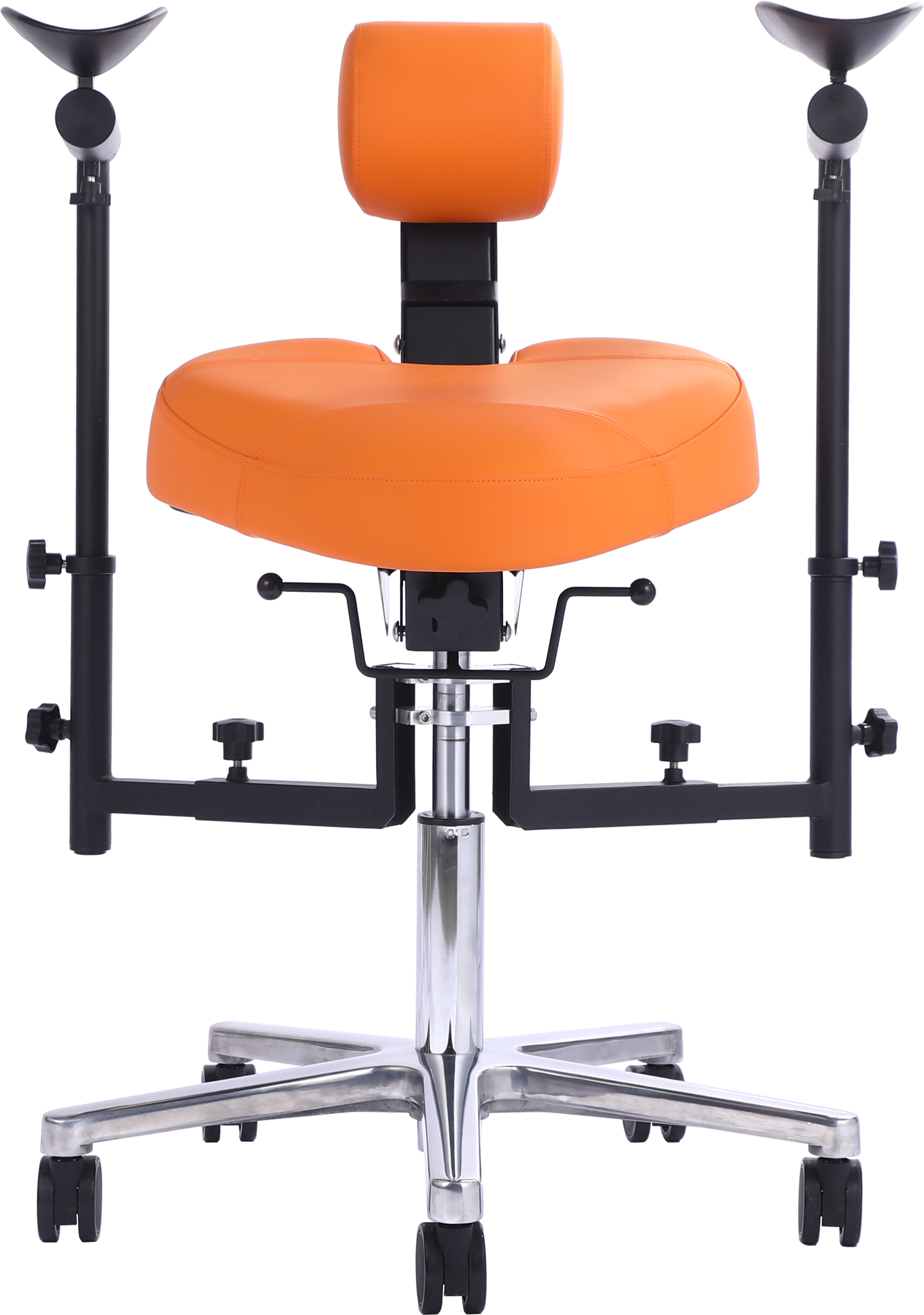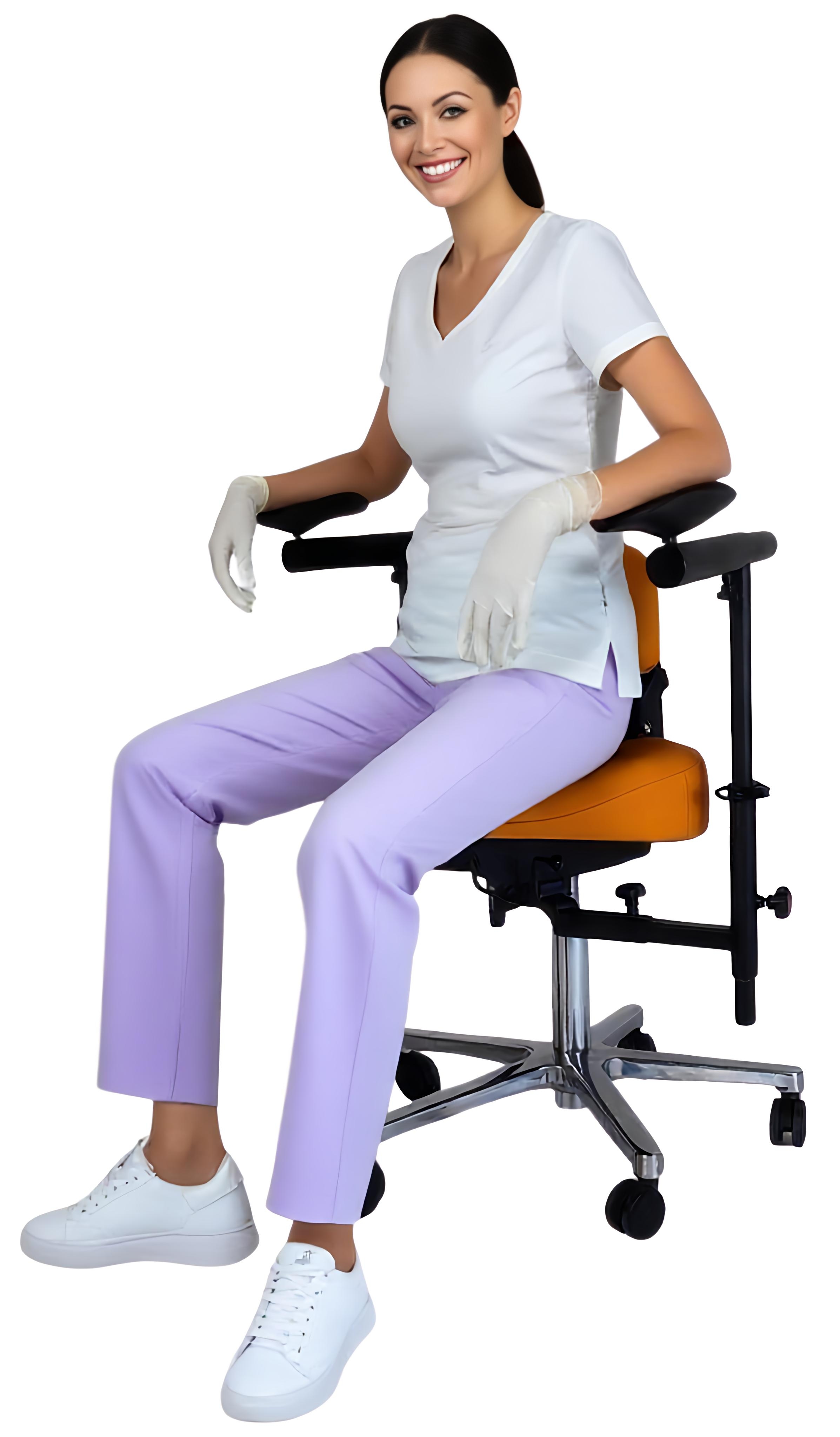 When sitting on Mergo, the legs naturally and comfortably open at an angle of 60-80 degrees, making it easier for us to get close to the patient. However, when you sit on an ordinary chair, you need to struggle to maintain this position, which makes you very prone to fatigue.